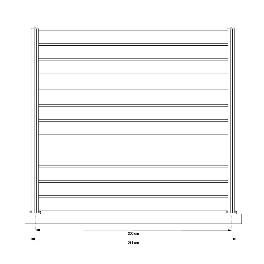 Grâce à ses lames ajustables en longueur, vous pouvez adapter votre clôture selon vos besoins. Les poteaux vous permettent de créer vos angles de clôture facilement, et peuvent aussi être recoupés en hauteur.