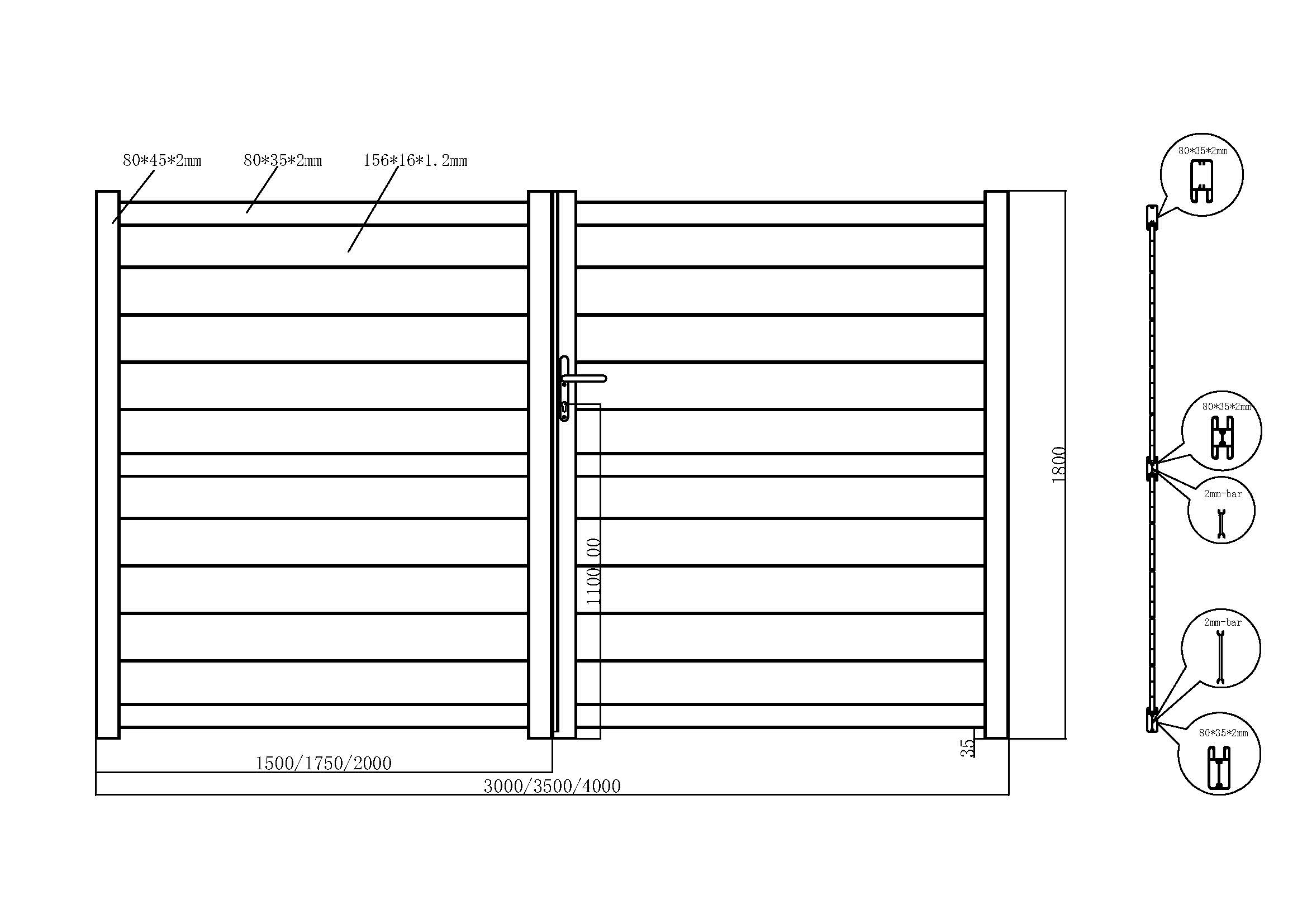 Section des traverses du haut, milieu et bas : 80 x 35 mm