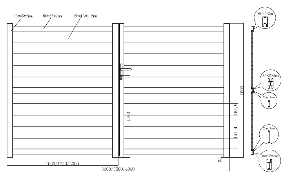 Deze aluminium poort van 3,5 m lang en 1,80 m hoog is een kwaliteitsproduct tegen een zeer concurrerende prijs.